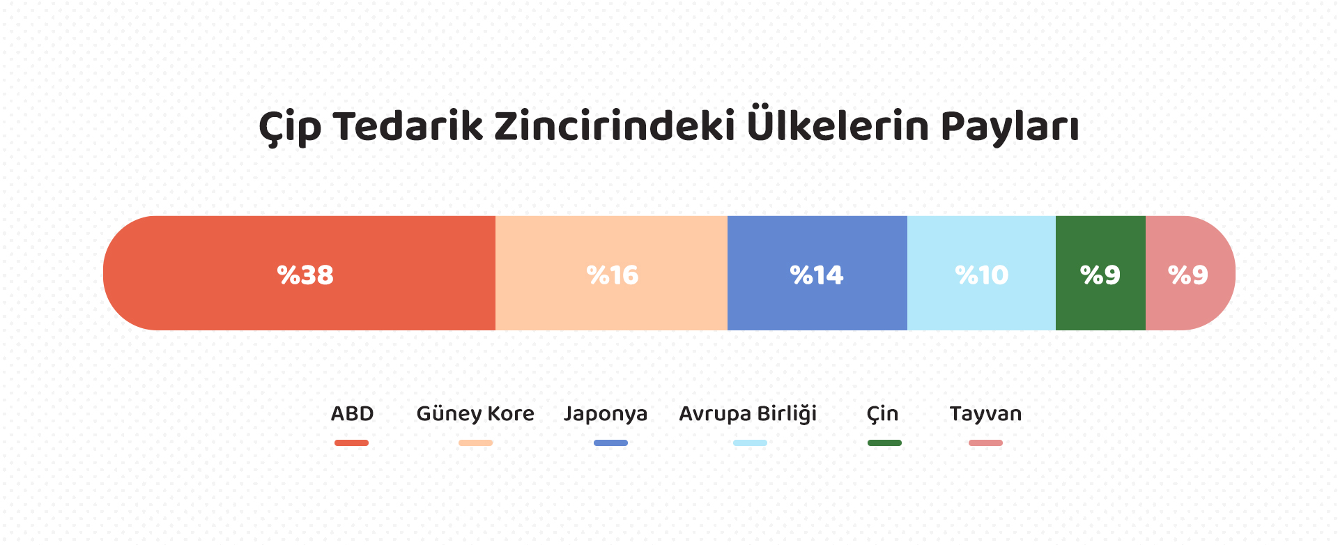 Bir çipin üretim sürecinin farklı aşamalarında yaklaşık 25 ülke yer alıyor. Üretiminden kullanıcıya ulaşıncaya kadar çip bileşenleri 50.000 kilometreden fazla yol katediyor ve ortalama 70 uluslararası sınırdan geçiyor. Yarı iletken çiplerin geliştirilmesi, tasarlanması ve üretilmesi son derece karmaşık bir süreç. Ayrıca bu süreçlerin her birinde farklı ülkeler daha ağırlıklı paya sahip. Bu nedenle doğal felaket, salgın hastalık, siyasi gerilimler gibi durumlar nedeniyle çip tedarik zincirinin herhangi bir aşamasında yaşanan bir sorun tüm üretim sürecini etkileyebiliyor.