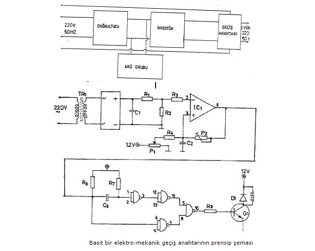 Bu devrede, çıkış gücü 200VA olan bir kesintisiz güç kaynağı geliştirilmiştir. Kesintisiz güç kaynağının giriş ve çıkış gerilimleri 220V AC dir. Batarya gerilimi 12V 'tur. Tasarlanan sistem lojik kontrol birimi tarafından kontrol edilmektedir. Lojik kontrol birimi akü seviyesine göre aküyü şarj etmekte ve şebeke de elektrik kesilmesi meydana geldiğinde röle ile anahtarlama yaparak yükün elektriksiz kalmamasını sağlamaktadır.