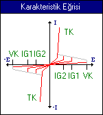 Yukarı tarafta görülen karakterisitk eğrideki VK değeri triyakın kırılma gerilimidir. Yani Triyakın yüksek gerilimden dolayı yanmasıdır. Bu durum istenmez. Görüldüğü gibi A1 ile A2 uçlarına uygulan gerilim arttığı taktirde triyakın tetiklenme akımıda düşüyor. TK grafiği triyakın tetiklendikten sonraki A1 ve A2 uçları arasından geçen akımdır. Yine grafikte görüldüğü gibi triyak iki yönde de aynı özellikleri göstermektedir.
