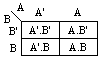 Yukarıdaki tablodaki çıkış değerleri karno haritasına, tabloda görülen kutu numaralarına göre yerleştrilmiştir. Karno haritasındaki kutuların sağ alt köşelerindeki mavi renk numaralar, kutu numaralarıdır. Aslında tablodan karno haritasına geçiş yapılırken A ve B değişkenlerinin gözönüne alınması gerekmektedir. Yani A ve B değişkenlerinin 0 olduğu durumdaki çıkış değeri karnodada A ve B değişkenlerinin 0 olduğu kutuya yazılmalıdır. Bu kutu da, görüldüğü gibi 0 nolu kutudur. Daha fazla değişkenli karnolarda da bu kural geçerlidir. Bu kural ayrıca daha kolaylık sağlar.