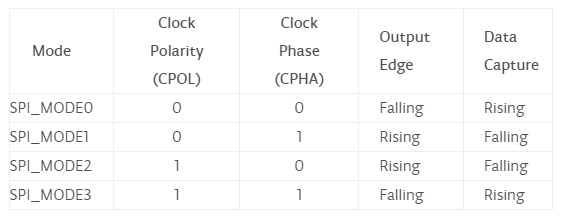 ►Data Clock HIGH veya LOW olduğunda boşta mı? Örnekler, clock darbelerinin yükselen veya düşen kenarında mı? Bu modlar SPISettings'deki üçüncü parametre tarafından kontrol edilir.